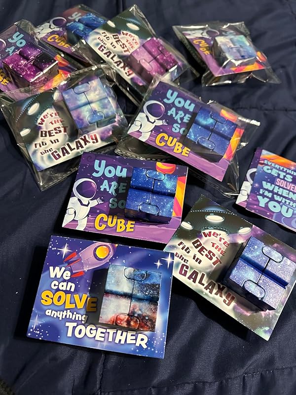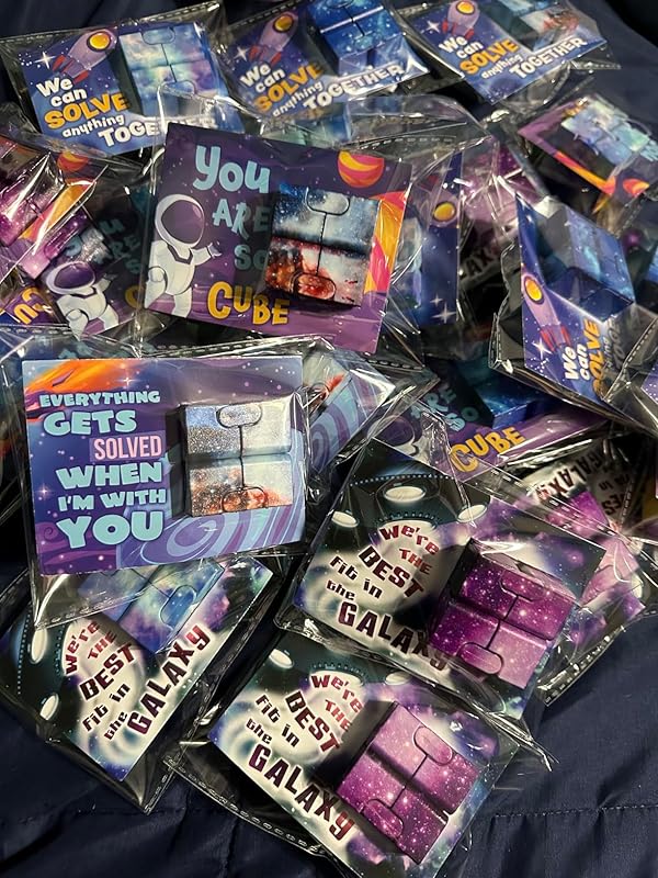 - GIFT OF CHOICE: A warm gift for Classroom Exchange, each Stress Relief Fidget Cube comes with a matching card, adding a personalized touch to the Valentine’s Day celebration. Beyond classroom exchanges, these Infinity Magic Cube Toys make fantastic Valentine’s Day, Holiday party favors,Gift Exchange, Game Prizes, School Prize, Love Notes and any Occasions, also serve as year-round stress relief and fidget toys, bringing a calming sense of emotion wherever they go.